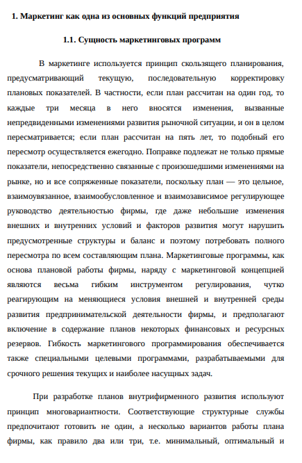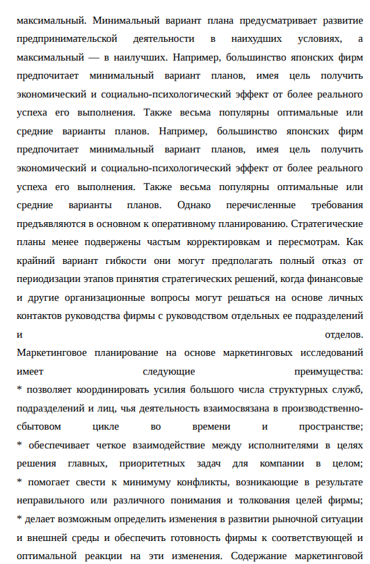 В настоящее время долгосрочная эффективная работа любого предприятия, его экономический рост и развитие определяются правильным выбором стратегических ориентиров, позволяющих наилучшим образом реализовать потенциальный человеческий капитал и другие ресурсы. Маркетинговая программа должна обеспечивать устойчивый экономический рост и развитие предприятия, повышение конкурентоспособности производимой им продукции и оказываемых услуг. Разработка качественной, комплексно обоснованной и обеспеченной ресурсами маркетинговой программы является одним из главных условий увеличения продаж, устойчивого и эффективного функционирования любого предприятия. Маркетинговая программа может быть обоснованной только в случае применения к ее разработке научных подходов, методов системного анализа, прогнозирования и оптимизации. Для выработки конкурентоспособных маркетинговых планов к процессу разработки следует применять комплексный, интеграционный, маркетинговый, функциональный, динамический, процессный, нормативный, ситуационный и другие подходы. Однако в настоящее время к разработке маркетинговых планов применяются только отдельные подходы и методы, вследствие чего стратегии утверждаются к реализации недостаточно обоснованными, что приводит к неэффективному использованию ресурсов. Успешная работа предприятия в рыночных условиях невозможна без наличия у него маркетингового плана, необходимого для: