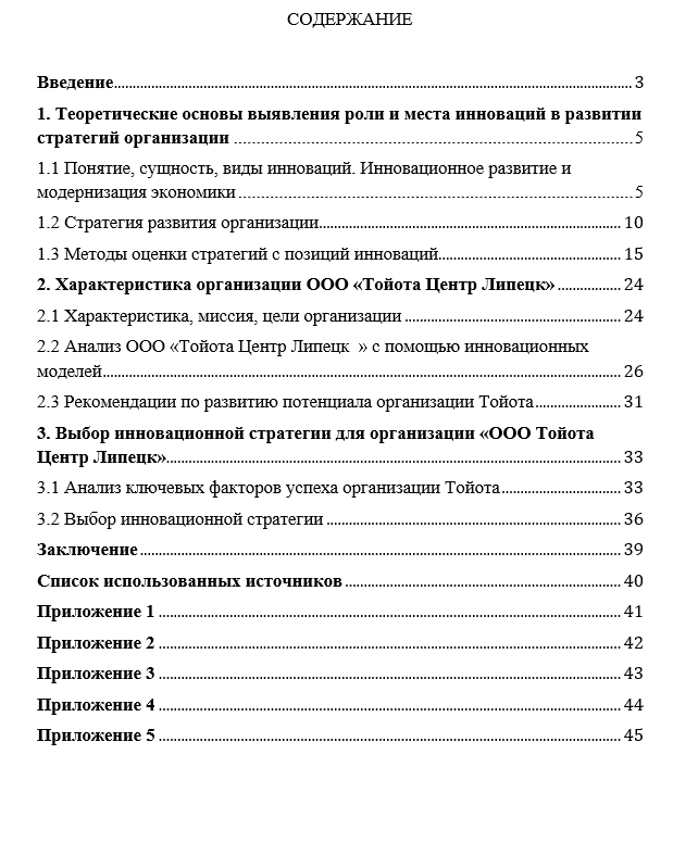Цель работы - оптимальность выбора инновационной стратегии организации ООО «Тойота Центр Липецк».