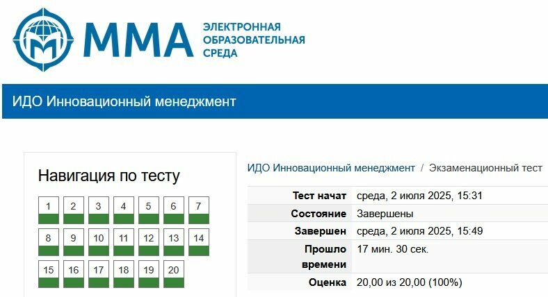 Сборник ответов к экзаменационному тесту Инновационный менеджмент (Инновационный менеджмент в сервисе) ММА.