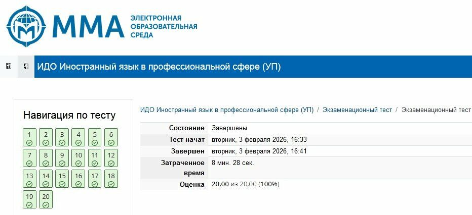 Сборник ответов к экзаменационному тесту Иностранный язык в профессиональной сфере ММА.