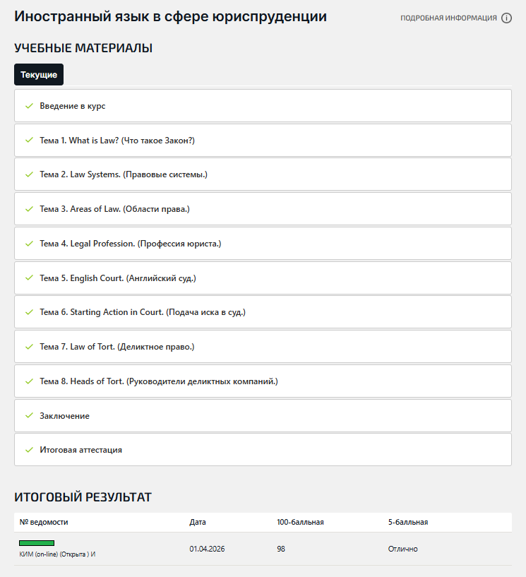 💯 Иностранный язык в сфере юриспруденции Синергия МосАП Ответы на тесты 1-8, итоговый тест, компетентностный