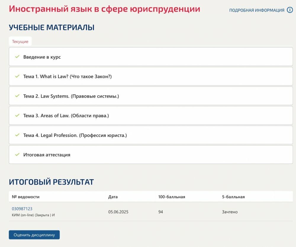 Ответы на все промежуточные и итоговый тесты по иностранному языку в сфере юриспруденции