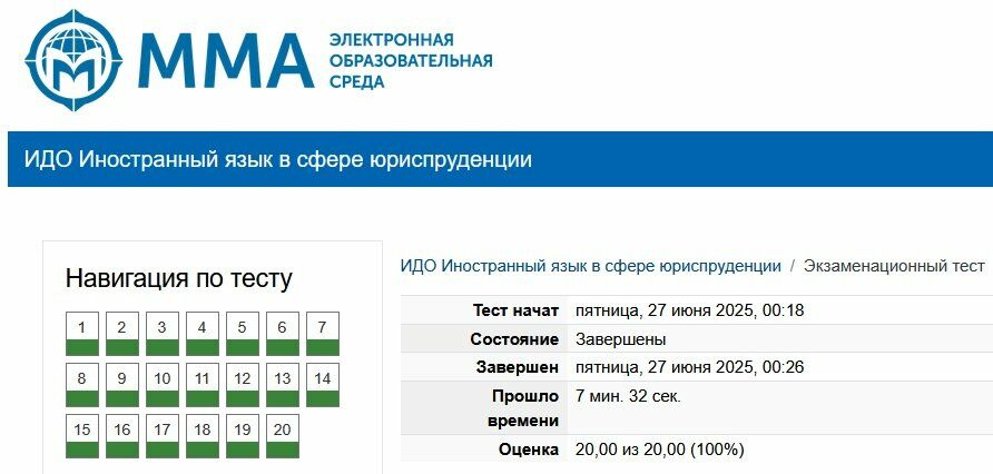 Сборник ответов к экзаменационному тесту Иностранный язык в сфере юриспруденции ММА.