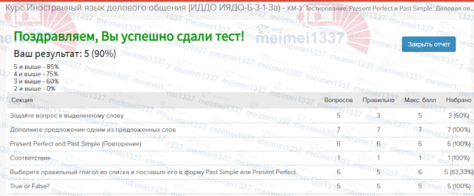 Ответы к заданиям КМ-3: Курс Иностранный язык делового общения - КМ-3. Тестирование. Present Perfect и Past Simple. Деловая переписка