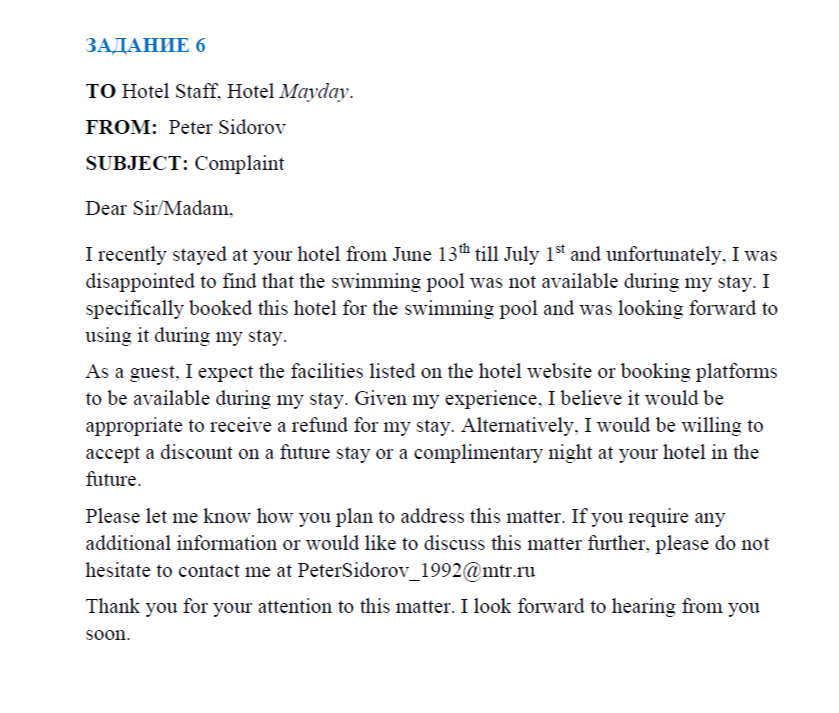 КМ-3 Деловое письмо, вариант 6, оценка 5 (отлично)