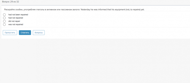 Ответы к экзамену: КМ-2. Perfect Tenses Active, Passive Voice (All tenses). Тестирование