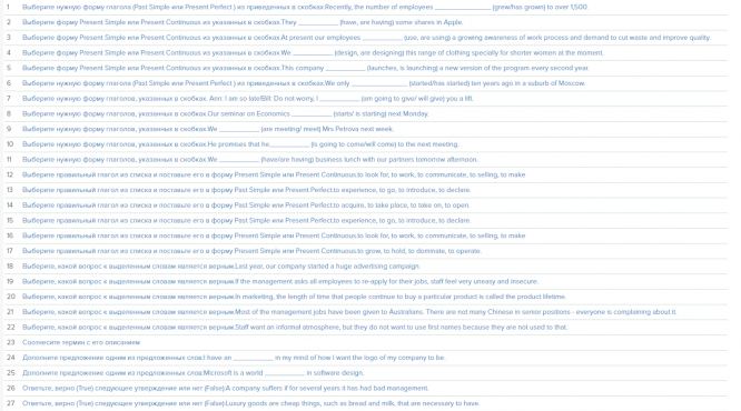 Сами вопросы из теста: