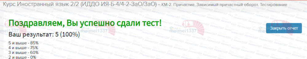 Курс Иностранный язык - КМ-2. Причастие. Зависимый причастный оборот. Тестирование - 100%