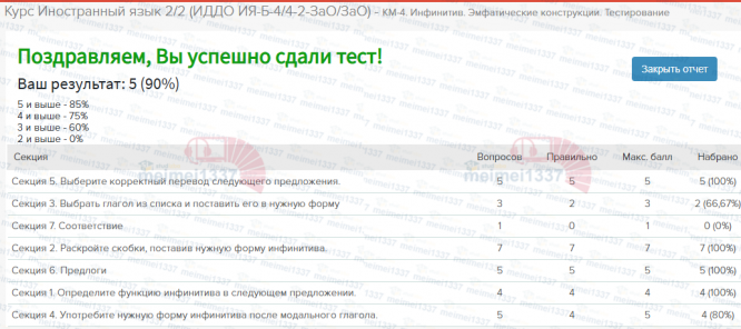 Курс Иностранный язык - КМ-4. Инфинитив. Эмфатические конструкции. Тестирование - 90%