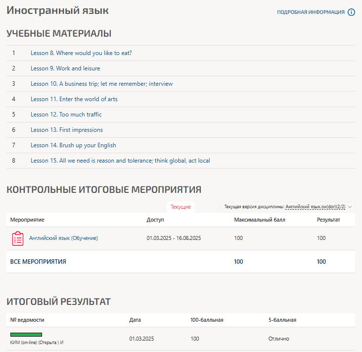 💯 Иностранный язык МТИ 2 семестр Lesson 8-15 Ответы на тест
