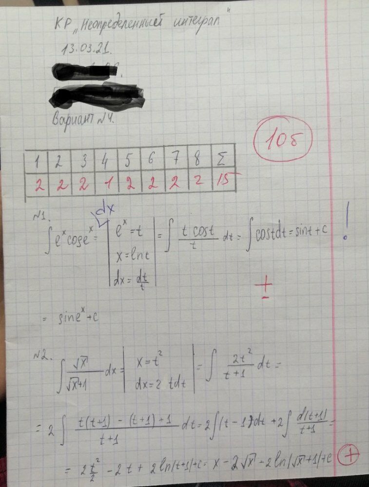 Ответы к контрольной работе 1: Неопределенный интеграл вариант 4