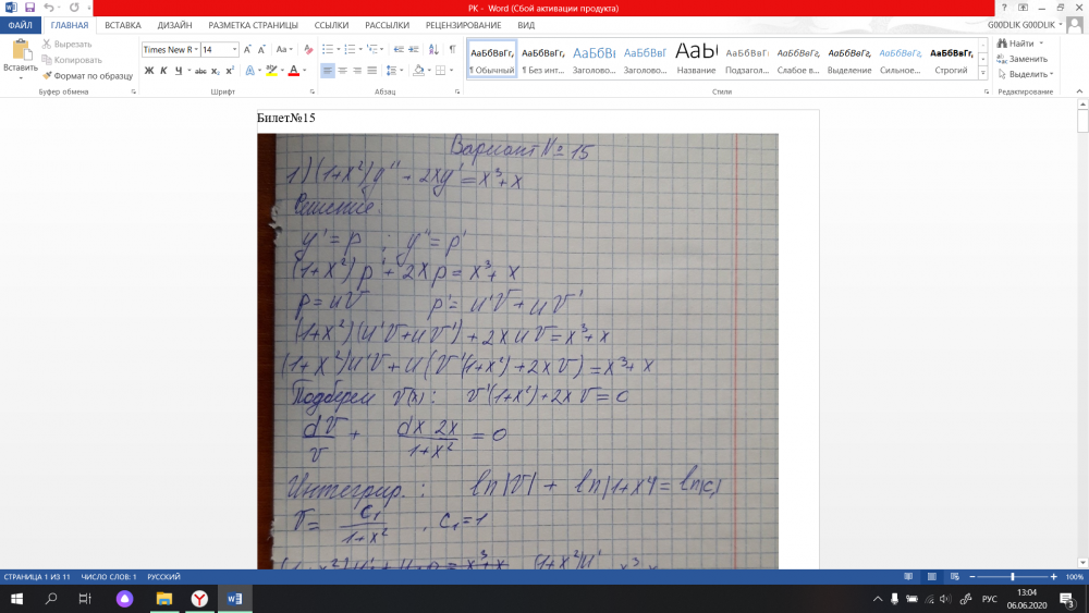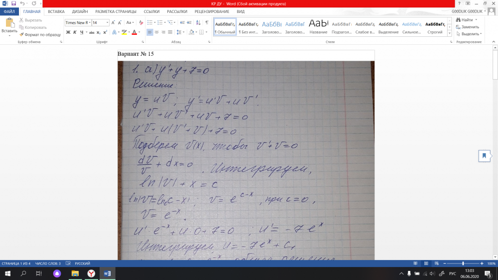 Ответы к контрольной работе 2: Дифференциальные уравнения вариант 15
