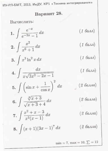 Ответы к контрольной работе 1: Техника интегрирования вариант 28