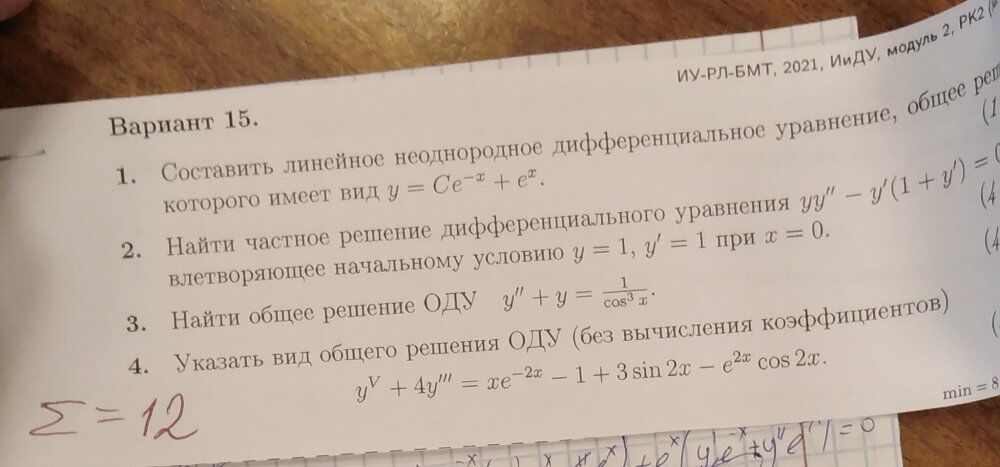 Ответы к контрольной работе 2: Дифференциальные уравнения вариант 15