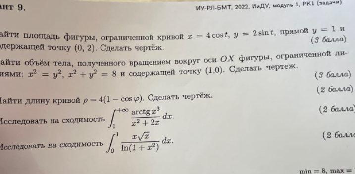 Типовой расчет №1 по математическому анализу, "Определенный интеграл", зачтено