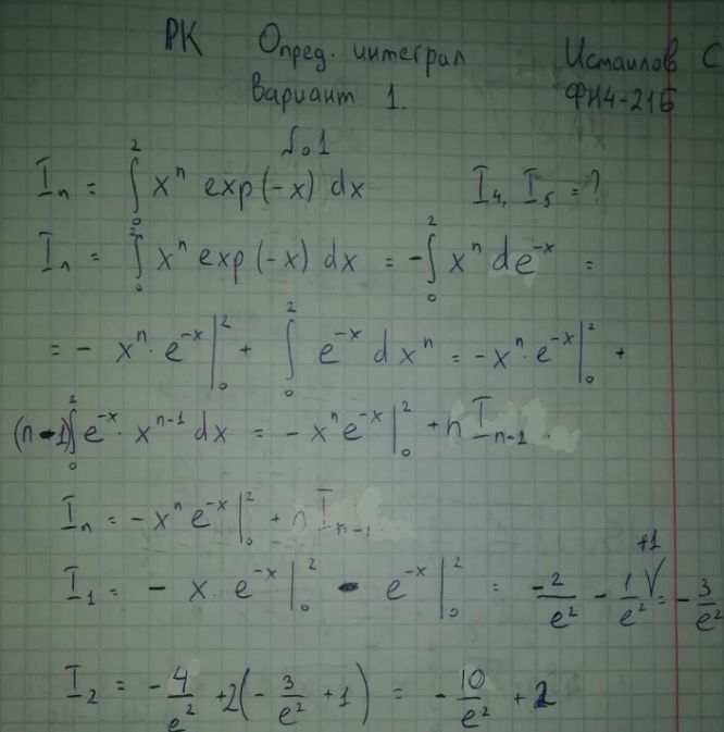 Ответы к контрольной работе 1: Определенный интеграл вариант 1