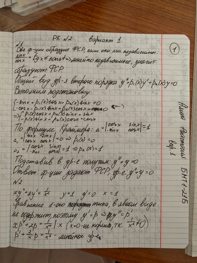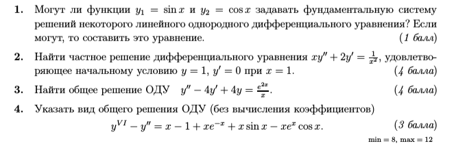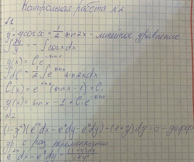 Ответы к контрольной работе 2: Дифференциальные уравнения