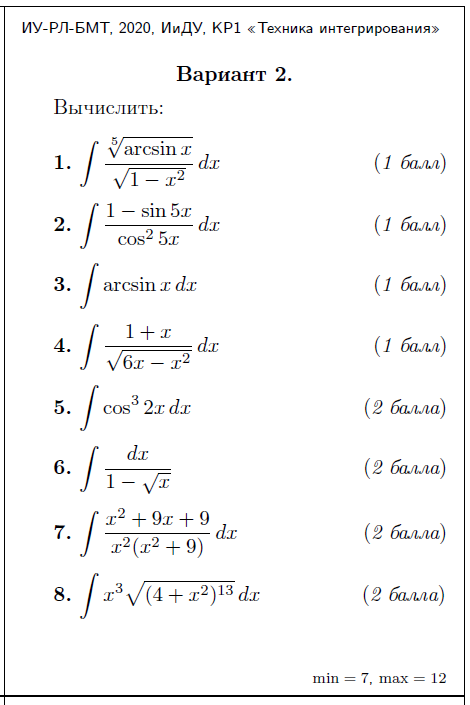 Ответы к контрольной работе 1: Техника интегрирования вариант 2