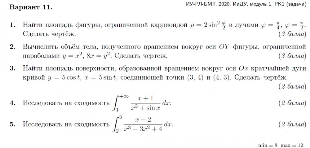 Ответы к контрольной работе 1: Неопределенный интеграл вариант 11