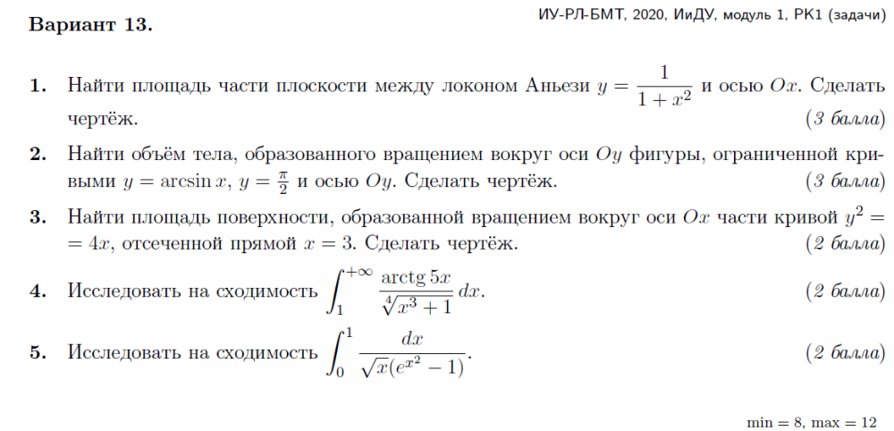 Ответы к контрольной работе 1: Неопределенный интеграл вариант 13