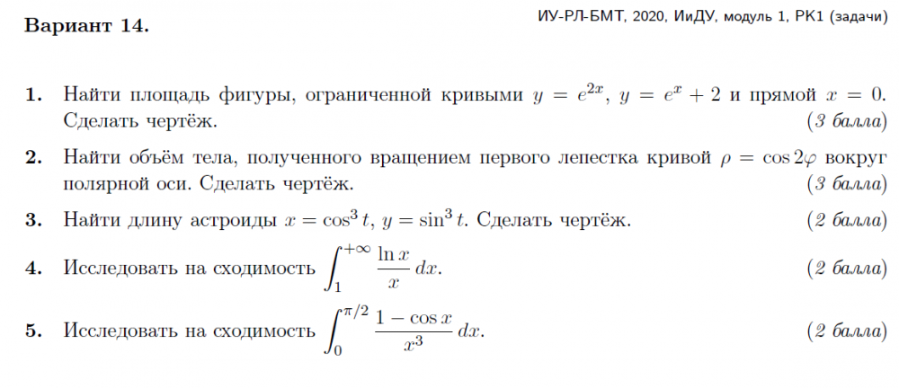 Ответы к контрольной работе 1: Неопределенный интеграл вариант 14