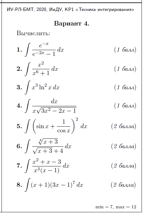 Ответы к контрольной работе 1: Техника интегрирования вариант 4