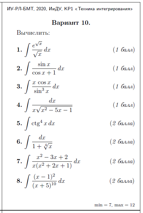 Ответы к контрольной работе 1: Техника интегрирования вариант 10