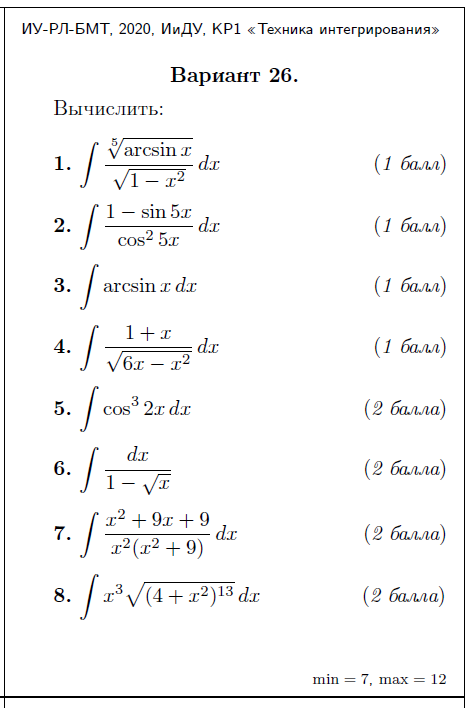 Ответы к контрольной работе 1: Техника интегрирования вариант 26