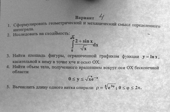 Ответы к контрольной работе 1: Определенный интеграл вариант 4, 20