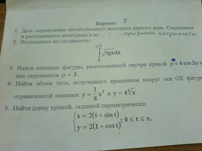 Ответы к контрольной работе 1: Определенный интеграл вариант 7, 23