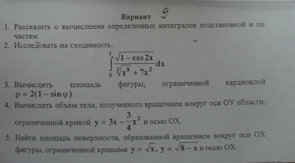 Ответы к контрольной работе 1: Определенный интеграл вариант 9, 25