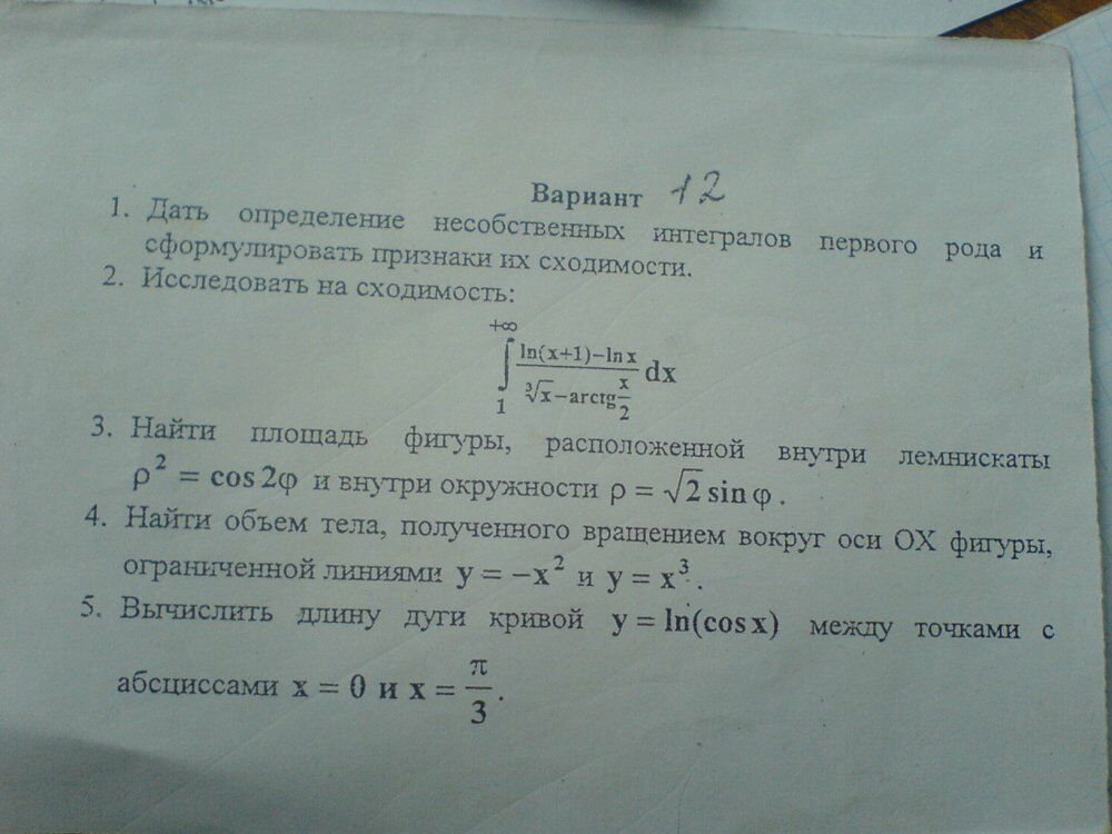 Ответы к контрольной работе 1: Определенный интеграл вариант 12, 28