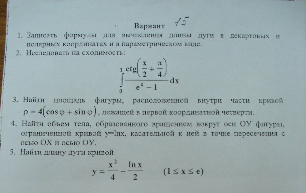 Ответы к контрольной работе 1: Определенный интеграл вариант 15, 31