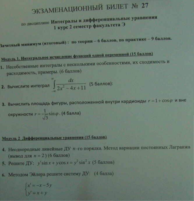 Для студентов МГТУ им. Н.Э.Баумана по предмету Интегралы и дифференциальные уравнения (ИиДУ)Решенный билетРешенный билет