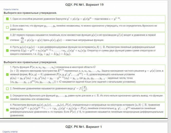 ОДУ номотех РК №1 "Интегралы и дифференциальные уравнения" - Ответы