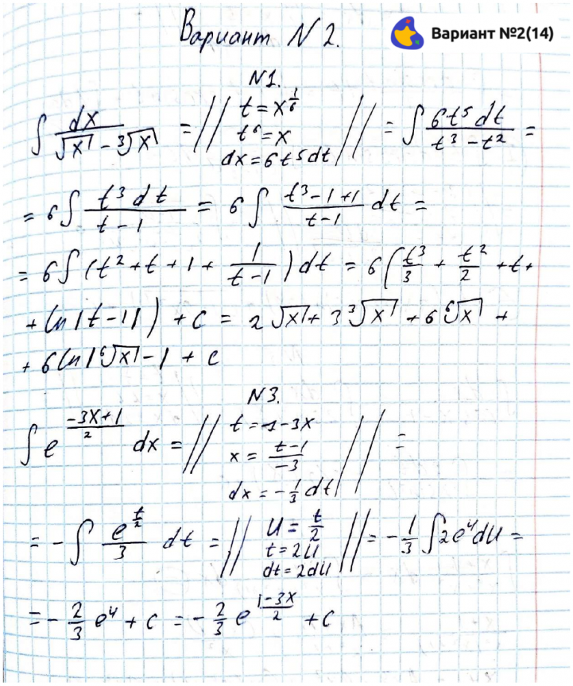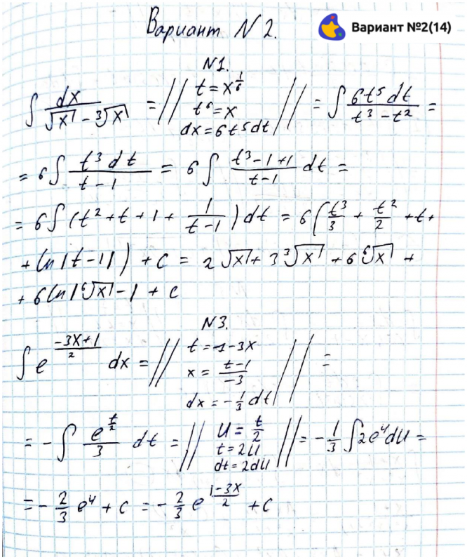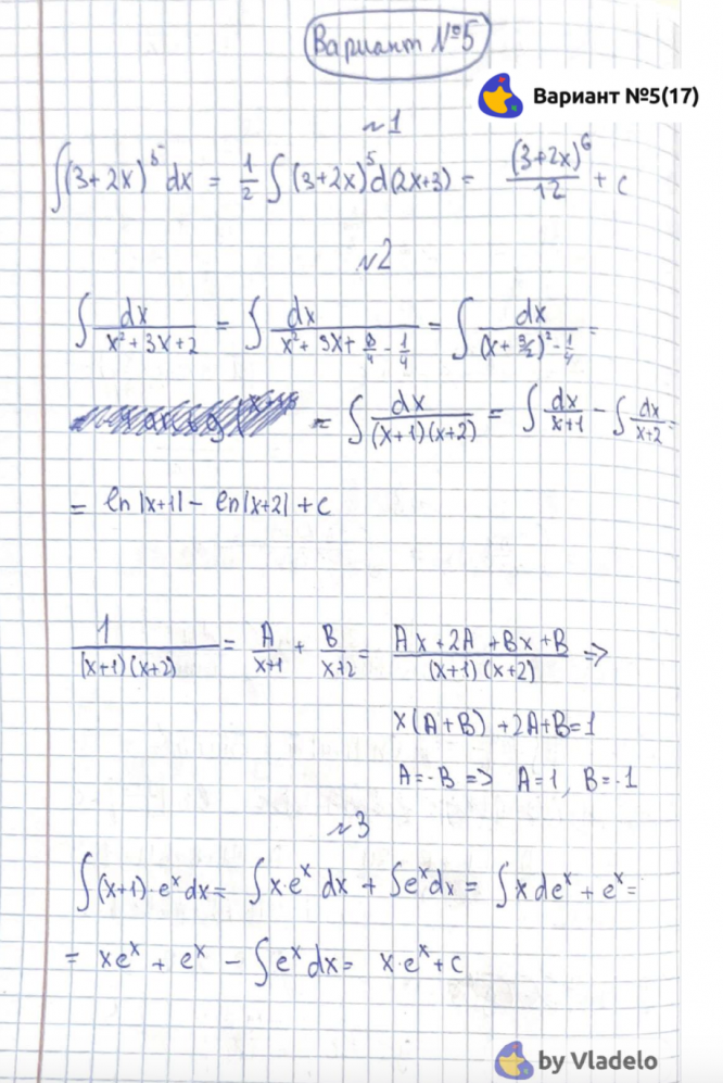 Билеты их решения для контрольной работы по интегралам (2 семестр, 1 курс).