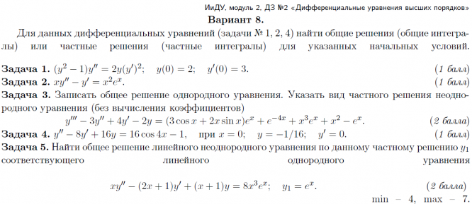 ДЗ 2: Дифференциальные уравнения высших порядков вариант 8