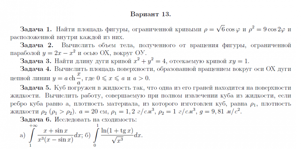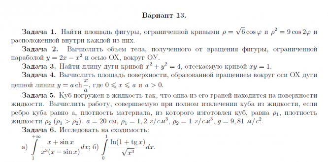 ДЗ 1: Приложение определенного интеграла вариант 13