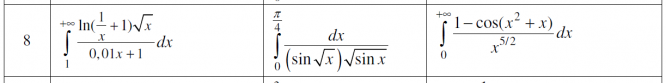 6. Исследовать несобственные интегралы (а,б,в) на сходимость.