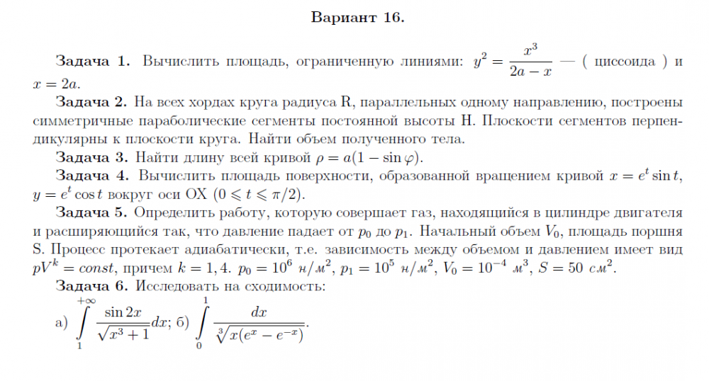 ДЗ 1: Приложение определенного интеграла вариант 16