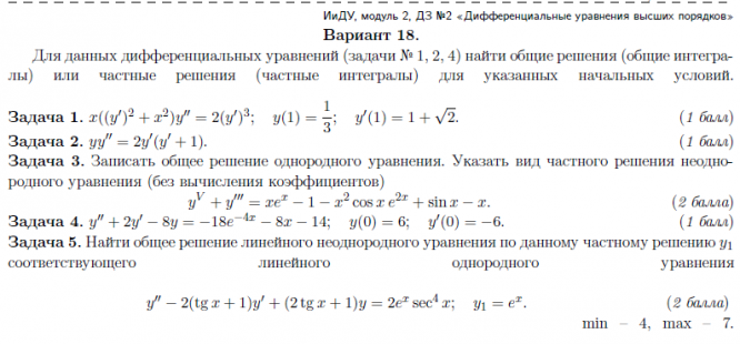 ДЗ 2: Дифференциальные уравнения высших порядков вариант 18