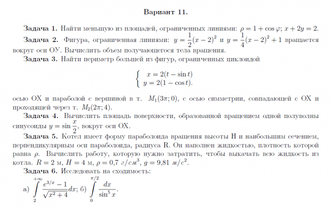 ДЗ 1: Приложение определенного интеграла вариант 11