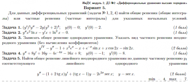 ДЗ 2: Дифференциальные уравнения высших порядков вариант 5