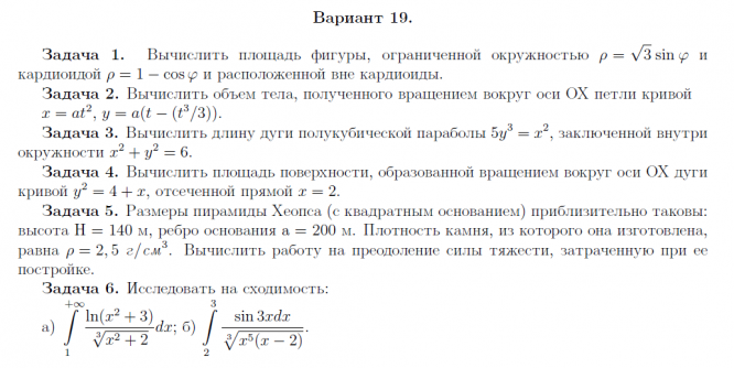 ДЗ 1: Приложение определенного интеграла вариант 19