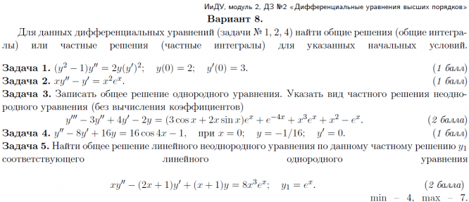 ДЗ 2: Дифференциальные уравнения высших порядков вариант 8