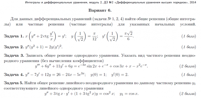 ДЗ 2: Дифференциальные уравнения высших порядков вариант 6