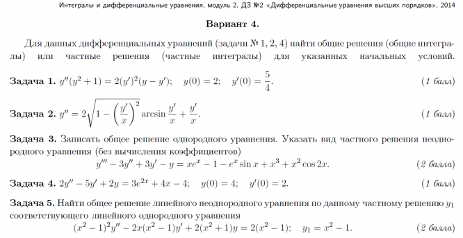 ДЗ 2: Дифференциальные уравнения высших порядков вариант 4