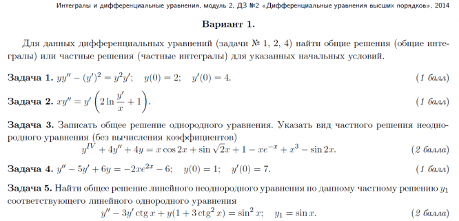 ДЗ 2: Дифференциальные уравнения высших порядков вариант 1