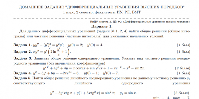 ДЗ 2: Дифференциальные уравнения высших порядков вариант 1