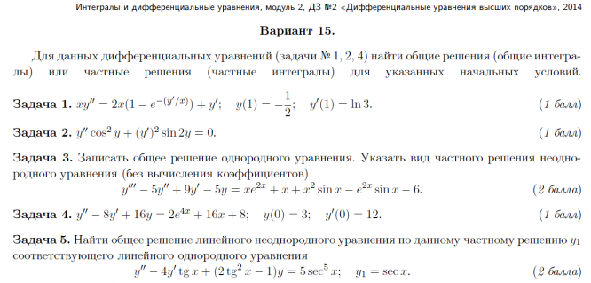 ДЗ 2: Дифференциальные уравнения высших порядков вариант 15